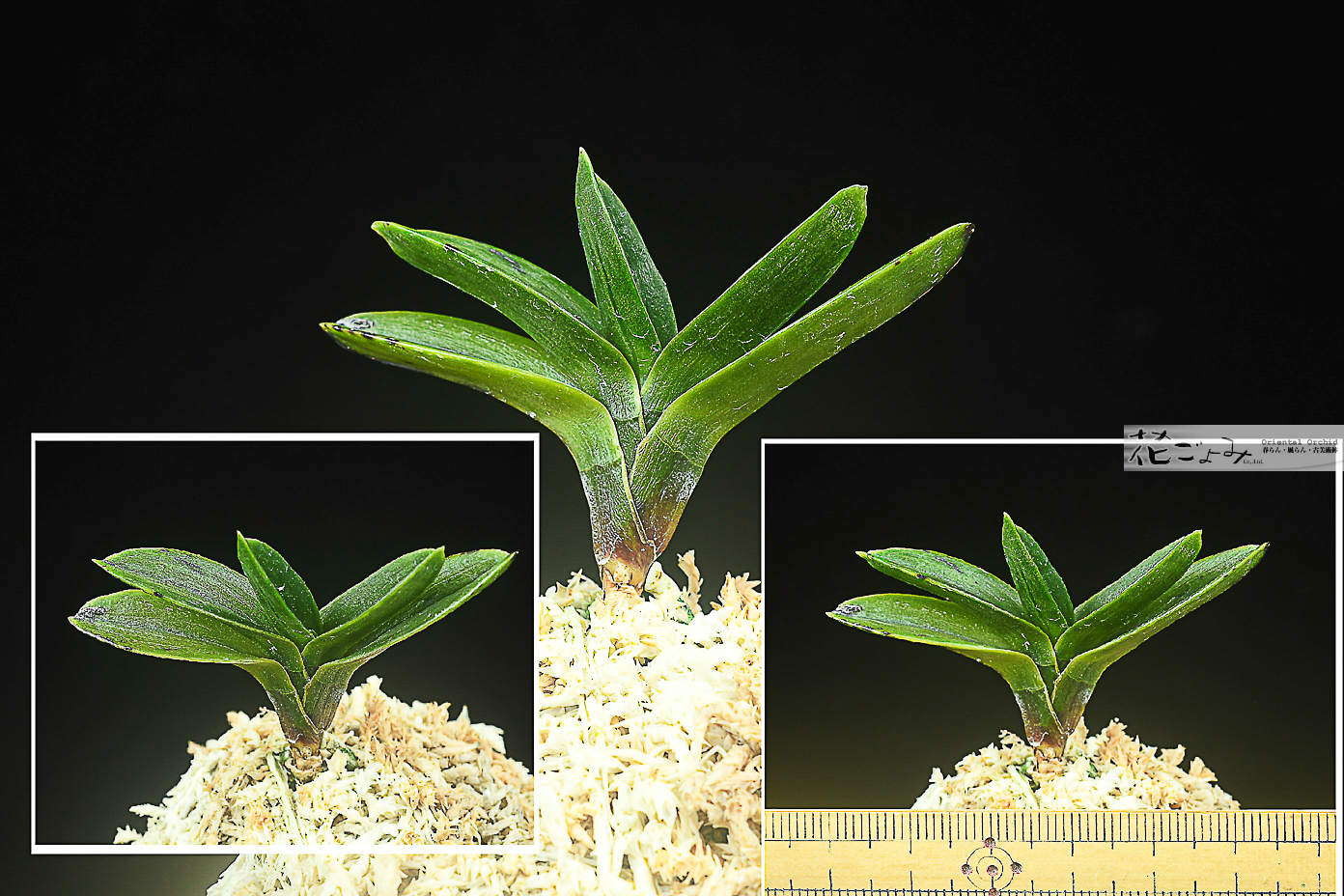 W11㎝葉丈5,5㎝白縞少しの親に墨縞W8cm 5,5枚とW7㎝4枚の子付